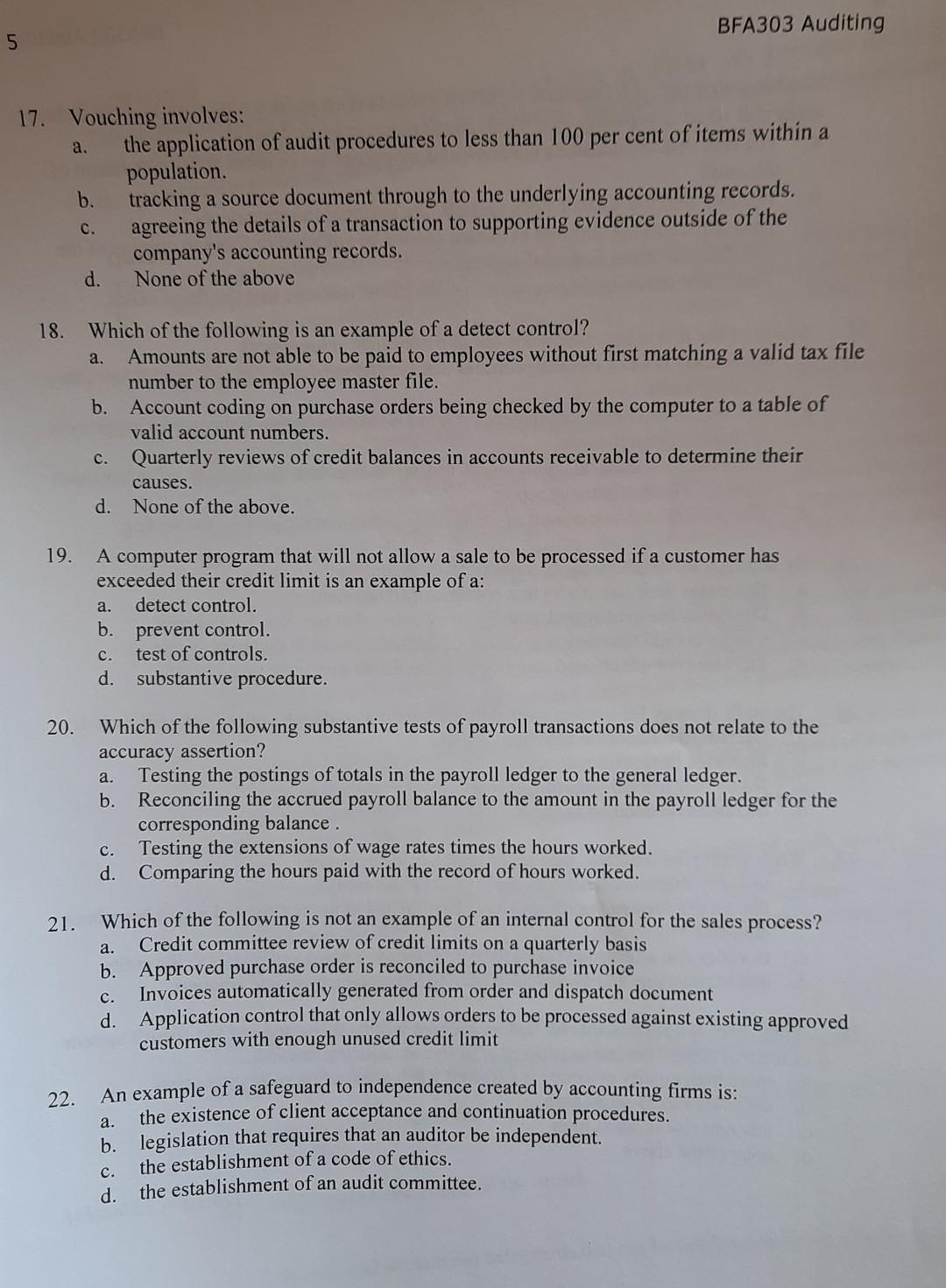 Solved Bfa303 Auditing 5 17 Vouching Involves A The Chegg Com